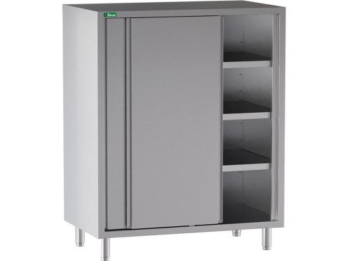 Armadi in acciaio inossidabile con ante scorrevoli – profondità 600 o 700 mm. Struttura in acciaio inox – ripiano intermedio regolabile con rinforzo ad Omega – porte tamburate – pannello posteriore in acciaio Inox – piedini regolabili.