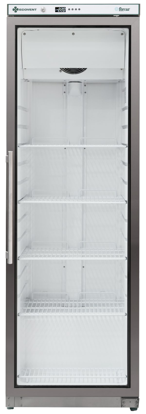 Armadi refrigerati ECOVENT con refrigerazione ventilata. Struttura esterna in lamiera verniciata epossidica bianca o in acciaio inox AISI 201 – interno in PS – porta a vetri – pannelli esterni di fondo e retro in lamiera zincata.