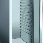 Armadi refrigerati pasticceria – ventilati. Armadio refrigerato per laboratori di pasticceria realizzato in acciaio inox AISI 304. Refrigerazione ventilata – gruppo incorporato – vano motore con fianchi coibentati – evaporatore posizionato a scomparsa in modo da avere il massimo spazio disponibile all’interno – controllo temperatura elettronico con termostato digitale – resistenza elettrica intorno alla cornice porta per eliminazione della condensa – sbrinamento automatico con resistenza elettrica e controllo automatico della temperatura di sbrinamento – evaporazione automatica dell’acqua di condensa – evaporatore trattato anticorrosione. Porta con molla di ritorno e reversibile – chiusura porta con chiave – guarnizione porta estraibile senza utensili – luce interna – fondo con angoli arrotondati – pannelli esterni di fondo e schienale in lamiera galvanizzata. Piedini in acciaio Inox AISI 304 regolabili in altezza.