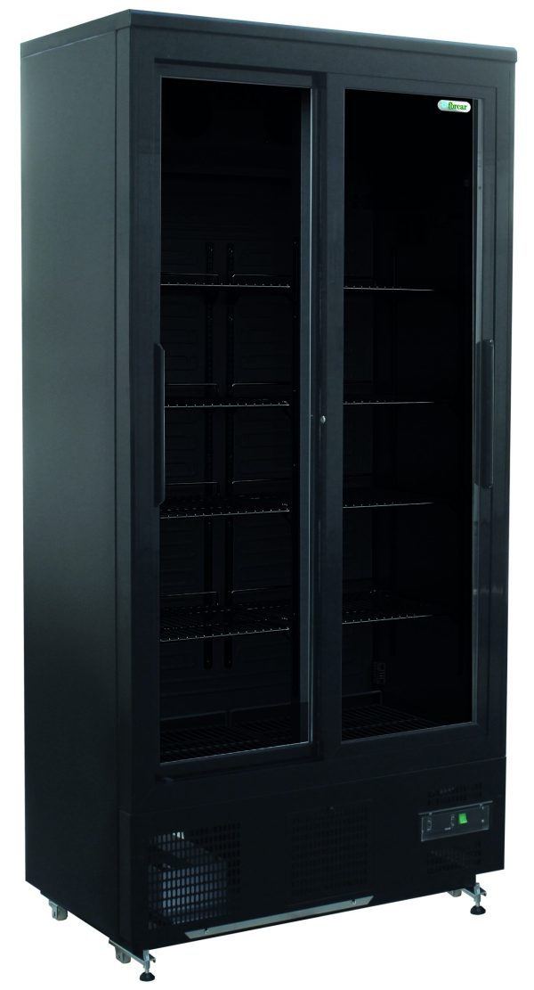 BOTTLE COOLER REFRIGERATO STATICO NERO PORTE SCORREVOLI +2+8°C