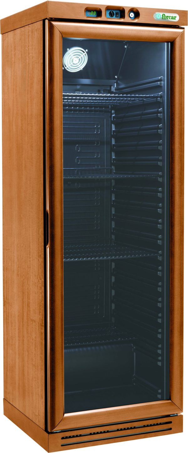 Cantinette vini refrigerate – statiche. Cantinette per vini con refrigerazione statica. Mobile in legno e porte con telaio in legno massiccio e vetrocamera – refrigerazione di tipo statico con evaporatore in piastra di alluminio posizionato sulla parete di fondo – termoregolatore per il controllo automatico della temperatura – evaporazione acqua di condensa automatica – illuminazione a led comandata da interruttore – ventilatore interno collegato direttamente all’alimentazione per rendere uniforme la temperatura in tutti i vani.