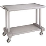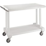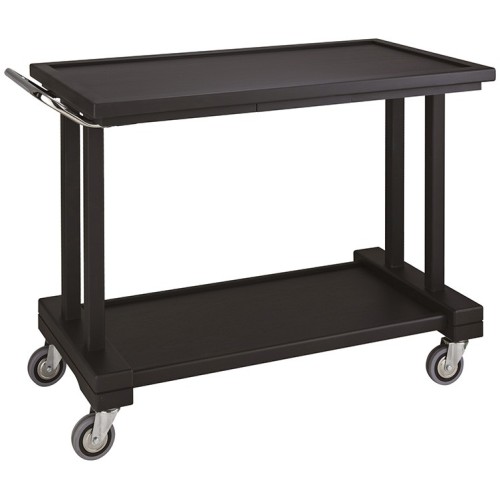 Carrello di servizio in legno. Struttura in legno massello – ripiani in nobilitato di betulla – reggipiatto incluso – ruote multidirezionali cromate ø 100 mm. Possibilità di utilizzo cupola con telaio in plexiglass trasparente acquistabile come optional.