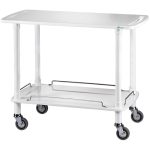 Carrello di servizio in legno. Struttura in legno massello – ripiani in multistrato di betulla – maniglie di spinta integrate nel piano superiore – ringhiere di contenimento sui piani inferiori – ruote multidirezionali ø 95 mm.