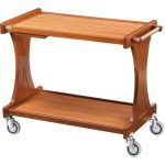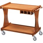 Carrello di servizio in legno. Struttura in legno multistrato di betulla – ripiani in nobilitato – cornice perimetrale e maniglia in legno massello – ruote multidirezionali di serie ø 95 mm.
