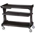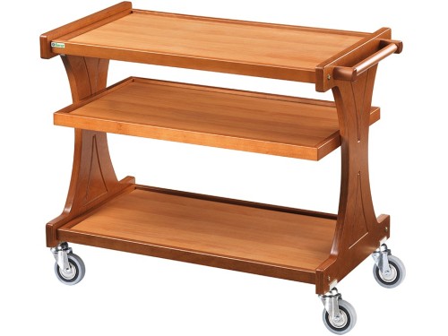 Carrello di servizio in legno. Struttura in legno multistrato di betulla – ripiani in nobilitato – cornice perimetrale e maniglia in legno massello – ruote multidirezionali di serie ø 95 mm.