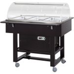 Carrelli refrigerati in legno con cupola in plexiglass. Struttura in legno multistrato di betulla – cupola semicircolare in plexiglass – refrigerazione statica – modelli con 2 mensole ripieghevoli – ruote multidirezionali ø 75 mm. di cui 2 con freno. Bacinelle escluse – le temperature di lavoro indicate sono da considerarsi con coperchi posizionati.
