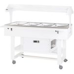 Carrelli refrigerati in legno con cupola in plexiglass. Struttura in legno multistrato di betulla – cupola semicircolare in plexiglass – refrigerazione statica – modelli disponibili con 1 mensola ripieghevole e 1 piano di appoggio – ruote multidirezionali ø 75 mm. di cui 2 con freno. Bacinelle escluse – le temperature di lavoro indicate sono da considerarsi con coperchi posizionati.