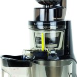 Macchina per realizzare centrifugati di frutta e verdura – struttura in acciaio inox e plastica idonea al contatto con gli alimenti – espulsione automatica della polpa – contenitore scarti in plastica – microinterruttore di sicurezza su aggancio coperchio superiore – vasca, filtro e disco in acciaio inox. Dimensione bocca Ø 80 mm.
