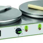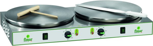 Macchine per la preparazione di crepes dolci o salate. Struttura in acciaio inox – piastra di cottura in ghisa con superficie multirighe antiscivolo – disponibili con una o due piastre di cottura – tempo di cottura da 1 a 3’ circa – termostato per la regolazione temperatura su ogni piastra – piastre doppie con funzionamento indipendente.