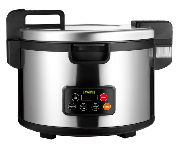 Macchine cuoci riso. Struttura e interno in acciaio inox – in dotazione cucchiaio e misurino da 180 ml. Funzione di scelta per la cottura di diversi tipi di riso “Short Grain Rice“ o “Long Grain Rice”. Possibilità di cuocere zuppe/porridge e di utilizzare il tasto “Delay Timer” fino ad un massimo di 4 ore. Funzione “Warm” per il mantenimento della temperatura. Capacità fino a 45 porzioni di riso.