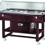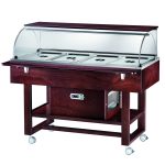 Carrelli refrigerati in legno con cupola. Struttura in legno multistrato di betulla – cupola semicircolare in plexiglass – refrigerazione statica – 2 mensole ripieghevoli – ruote multidirezionali ø 75 mm. di cui 2 con freno. Bacinelle escluse – le temperature di lavoro indicate sono da considerarsi con coperchi posizionati.