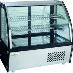 Espositori refrigerati con vetro curvo – ventilati. Espositori refrigerati con vetro curvo da banco con refrigerazione ventilata. Quattro lati espositivi – panoramica di tutti i prodotti – efficienza termica data dal vetro camera – sbrinamento automatico – controllo temperatura elettronico – struttura in vetro, materiale plastico e frontale inox – porte scorrevoli e luce interna a led.