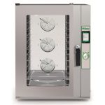 Forni per gastronomia a convezione/vapore diretto. Struttura in acciaio inox – illuminazione interna a led – ventilatore centrifugo con autoreverse – porta con doppio vetro (vetro interno apribile) – scarico acqua – kit lavaggio interno incluso. Controllo digitale con 99 programmi – fino a 4 cicli di cottura in sequenza automatica per programma – preriscaldamento automatico – regolazione iniezione acqua digitale – sonda al cuore – regolazione ventole a 5 velocità – LCD da 2.4 pollici a colori – multi timer – connettività wifi e usb 2.0 per caricamento delle ricette.