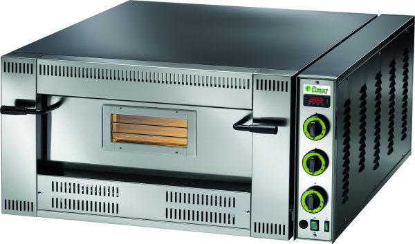 Forni a gas professionali per la cottura di pizza, focacce, ecc. Rivestimento frontale inox – piano di cottura refrattario – isolamento termico mediante rivestimento in lana di roccia – porte con vetro di ispezione in pirex – accensione con piezoelettrico – alimentazione a metano, in dotazione kit G.P.L – illuminazione interna – termostato digitale – allacciamento gas 3/4“G. Accessori: Raccordo antivento per migliorare la combustione – raccordo sovrapposizione 2 forni.