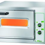 Forno elettrico professionale per la cottura di pizza, focacce, ecc. Rivestimento frontale inox – piano di cottura refrattario – isolamento termico mediante rivestimento in lana di roccia – 3 termostati – porta cieca.