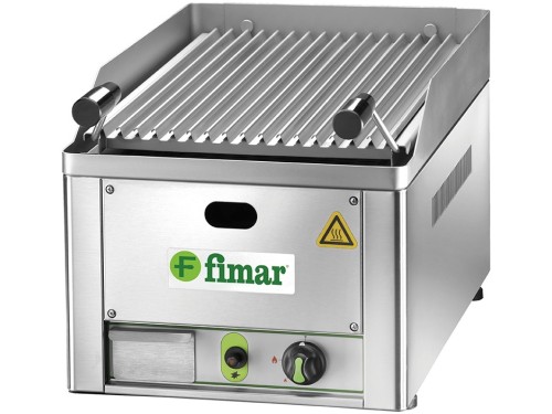 Macchina da banco per cuocere carne, pesce, verdure, ecc. Il funzionamento consiste nel riscaldare la pietra lavica posta su una griglia di supporto in acciaio. Struttura in acciaio inox – griglia di cottura in lamiere piegate a V in acciaio inox – accensione con piezoelettrico – alimentazione metano, in dotazione kit GPL – allacciamento gas 1/2“G – cassetto raccolta residui di cottura.
