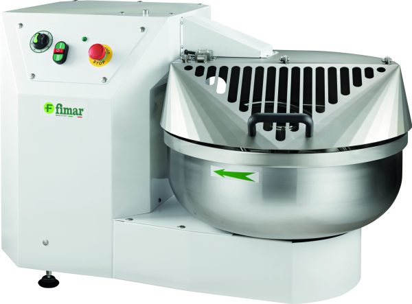 Impastatrice con utensile a forcella che consente la lavorazione degli impasti più duri permettendo un’ottima ossigenazione ed evitando il riscaldamento dell’impasto. Carcassa in acciaio verniciato – vasca, forcella e coperchio in acciaio inox AISI 304 – timer meccanico – comandi in bassa tensione. La protezione della vasca per metà grigliata permette l’aggiunta degli ingredienti anche in lavorazione. Accessori: seconda velocità, carrello H 10 cm o cavalletto H 40 cm.