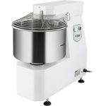Impastatrice a spirale con testa fissa. Macchina per realizzare diversi tipi di impasto, indicata soprattutto per impasti teneri come pane, pizza e piada. Struttura rivestita con vernice antigraffio – parti a contatto con gli alimenti quali vasca, spirale ed asta spacca pasta sono in acciaio inox – microinterruttore di sicurezza su coperchio vasca – coperchio in policarbonato fumè di serie. Vari optional a richiesta, tra cui coperchio grigliato in acciaio inox AISI 304.