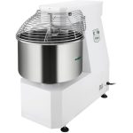 Impastatrice a spirale con testa sollevabile e vasca fissa. Macchina per realizzare diversi tipi di impasto, indicata soprattutto per impasti teneri come pane, pizza e piada. Struttura rivestita con vernice antigraffio – parti a contatto con gli alimenti quali vasca, spirale ed asta spacca pasta sono in acciaio inox – microinterruttore di sicurezza su coperchio vasca – coperchio in policarbonato fumè di serie. Vari optional a richiesta, tra cui coperchio grigliato in acciaio inox AISI 304.