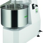 Impastatrice a spirale light. Macchina per realizzare diversi tipi di impasto, indicata soprattutto per impasti teneri come pane, pizza e piada. Struttura rivestita con vernice antigraffio – parti a contatto con gli alimenti (vasca, spirale) in acciaio inox AISI 304 – microinterruttore di sicurezza su coperchio vasca – coperchio in policarbonato fumè. Vari optional a richiesta, tra cui coperchio grigliato in acciaio inox AISI 304.