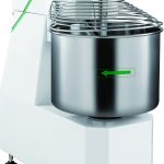Impastatrice a spirale con testa fissa. Macchina per realizzare diversi tipi di impasto, indicata soprattutto per impasti teneri come pane, pizza e piada. Struttura rivestita con vernice antigraffio – parti a contatto con gli alimenti quali vasca, spirale ed asta spacca pasta sono in acciaio inox – microinterruttore di sicurezza su coperchio vasca – coperchio in policarbonato fumè di serie. Vari optional a richiesta, tra cui coperchio grigliato in acciaio inox AISI 304.