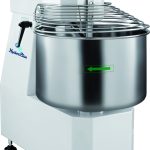 Impastatrice a spirale “Hydraplus” con pannello comandi meccanico, testa sollevabile e vasca ?ssa. Macchina per realizzare diversi tipi di impasto, indicata soprattutto per impasti ad alta idratazione ?no al 90%. Struttura rivestita con vernice antigra?o – parti a con-tatto con gli alimenti quali vasca, spirale ed asta spacca pasta sono in acciaio inox – microinterruttore di sicurezza su coperchio vasca – coperchio grigliato in acciaio inox di serie.