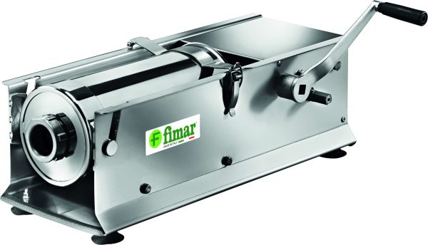 Struttura in acciaio inox – pistone in alluminio – 2 velocità: una lenta per l’avanzamento del pistone, l’altra veloce di ritorno in dotazione 3 imbuti ø 8 mm – 16,5 mm – 23,5 mm.