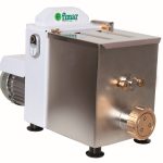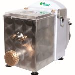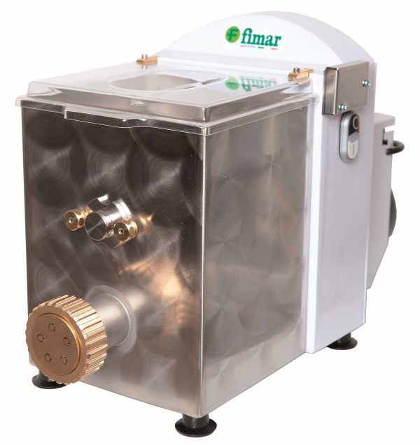 Macchina per impastare ed estrudere impasti all’uovo in diversi formati. Struttura rivestita con vernice antigraffio – vasca e gancio impastatore in acciaio inox AISI 304 – microinterruttore su coperchio vasca – ll modello MPF2.5CN include il coltello taglia pasta elettronico nel prezzo. Accessori: trafile in bronzo di diverso tipo – carrello e cassette porta pasta fresca.