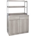 Mobili di servizio alti doppi – struttura e pannelli in nobilitato – 2 cassetti portaposate di cui 1 con separatore – 2 sportelli – ruote multidirezionali ø 50 mm. Optional tramoggia A260.