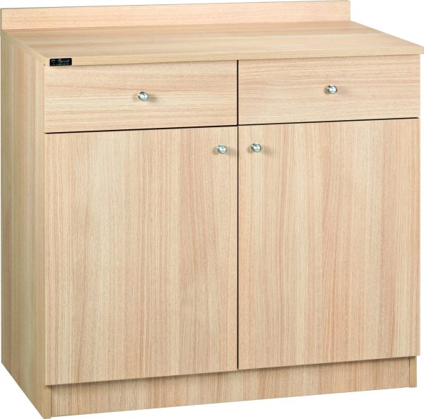 Mobili di servizio in legno. Mobili bassi doppi – struttura e pannelli in nobilitato – 2 cassetti portaposate di cui 1 con separatore – 2 sportelli – ruote multidirezionali ø 50 m. Optional tramoggia A260.