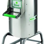 Macchina per pelare patate. Struttura in acciaio inox AISI 304 – coperchio superiore in policarbonato alimentare trasparente – microinterruttori di sicurezza su coperchio superiore e su bocca di uscita – pulsante espulsione prodotto – timer 0÷4 minuti – getto automatico d’acqua per favorire l’eliminazione dei residui di pelatura – in dotazione piattello abrasivo estraibile PTB e abrasivo laterale di serie. Modello compreso di cavalletto CB.