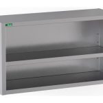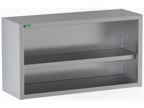 Pensili aperti. Struttura in acciaio inox – ripiano intermedio regolabile con rinforzo ad Omega – staffe di montaggio a muro incluse.