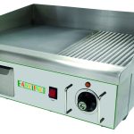 Macchina per cuocere e riscaldare carne, pesce, verdure, toast farciti, panini, ecc. Struttura in acciaio inox – piastra di cottura in ghisa – piastra superiore auto-bilanciata – piastra singola rigata.