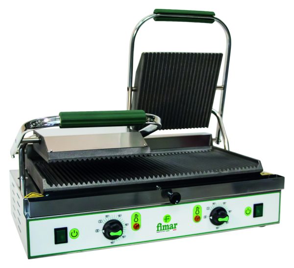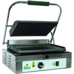 Macchina per cuocere e riscaldare carne, pesce, uova, verdura, formaggi, toast farciti, panini, ecc. Struttura in acciaio inox – piastra di cottura in ghisa sabbiata, in grado di mantenere a lungo la temperatura – resistenze a contatto con le piastre per garantire una migliore conducibilità – termostato di