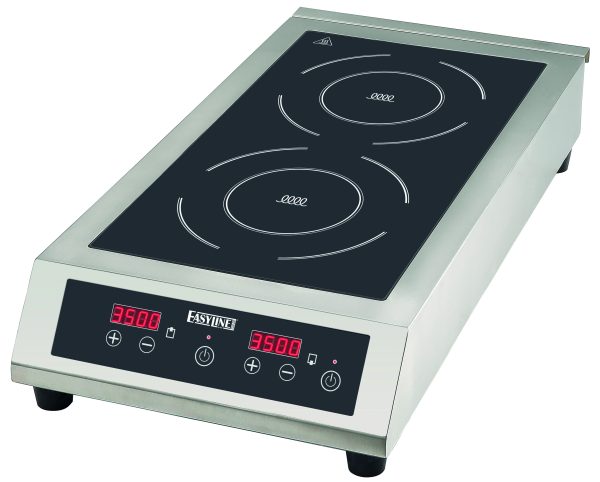 Macchina con sistema di cottura ad induzione di calore dalla piastra al contenitore (di tipo metallico). Struttura in acciaio inox – piastra in vetroceramica – funzionamento in modalità livelli di potenza e/o in modalità temperatura – timer digitale – touch control.