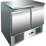Saladette refrigerate con refrigerazione statica. Sbrinamento automatico – evaporatore statico schiumato su tre lati con ventola per uniformare la temperatura – coperchio ad apertura telescopica – termostato elettronico -1 griglia intermedia GN1/1 per porta – bacinelle escluse.