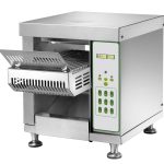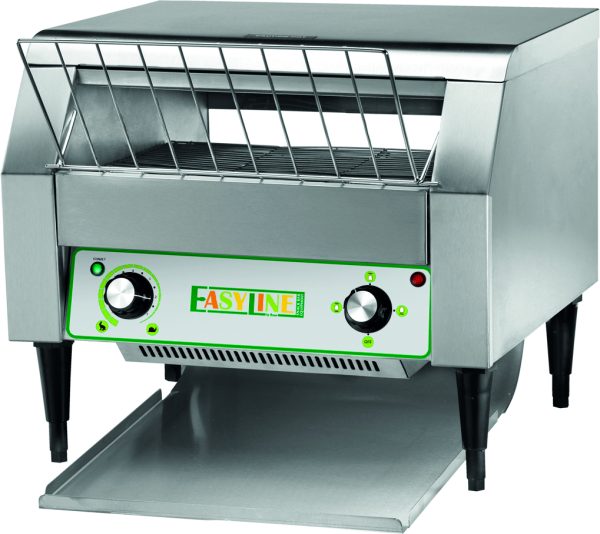 Tostapane per tostare pane a ciclo continuo. Struttura in acciaio inox – tappeto di tostatura girevole in acciaio inox – camera di cottura con isolamento termico – regolatore velocità di scorrimento tappeto di cottura manuale – 3 modalità accensione resistenze – modalità risparmio energetico – uscita del pane tostato frontale o posteriore.Tempo di cottura dai 90 ai 340 secondi.