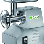 Carcassa e tramoggia in acciaio inox. Macchina con gruppo di macinazione completamente removibile, che permette di poterlo collocare in frigorifero senza che debba essere pulito dai residui di carne macinata dopo ogni utilizzo in conformità con le norme di igiene HACCP – il gruppo di macinazione in acciaio inox AISI 304 può essere lavato in lavastoviglie – comandi in bassa tensione – bocca ingresso carne ø 52 mm – riduttore con ingranaggi a bagno d’olio. In dotazione sistema enterprise con piastra inox (fori ø 6 mm) e coltello inox autoaffilante.
