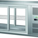 Vetrinette espositive 4 lati – ventilate. Vetrinette espositive con refrigerazione ventilata. Quattro lati espositivi – panoramica di tutti i prodotti esposti – efficienza termica data dal vetro camera – sbrinamento temporizzato con vaschetta di raccolta condensa auto-evaporante – ante scorrevoli su entrambi i lati – illuminazione a LED.