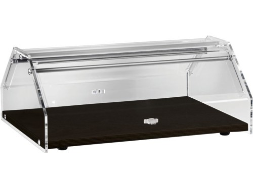 Vetrina porta brioches e croissant. Piano in legno. Cupola in plexiglass semitrasparente con antine apribili sui 2 lati.