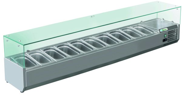 Vetrine refrigerate pizza – statiche. Vetrine refrigerate pizza con refrigerazione statica. Vetri di protezione – controllo temperatura elettronico – sbrinamento a sosta – gruppo incorporato solo lato destro gas R600a. Adatte per il contenimento di bacinelle gastronorm, inox o in policarbonato – bacinelle escluse. Disponibili nella Serie 330 o nella Serie 380.